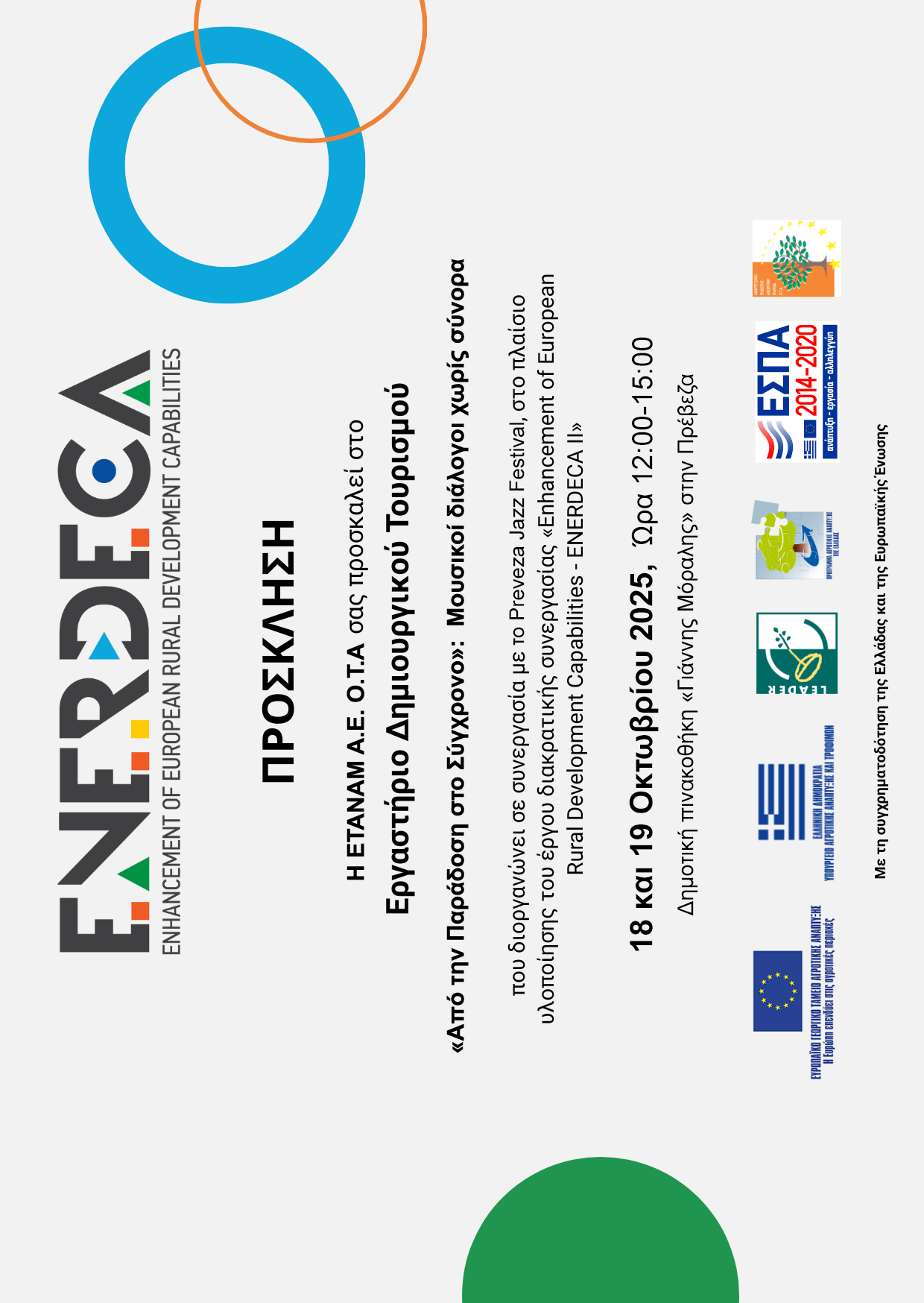 ΑΝΟΙΧΤΗ ΠΡΟΣΚΛΗΣΗ Σεμινάριο Ερμηνείας Πόρων και Δημιουργικού Τουρισμού του έργου διακρατικής συνεργασίας «Enhancement of European Rural Development Capabilities – ENERDECA II» Η Αναπτυξιακή Νοτίου Ηπείρου-Αμβρακικού Α.Ε. Αναπτυξιακός ΟΤΑ (ΕΤΑΝΑΜ Α.Ε.…